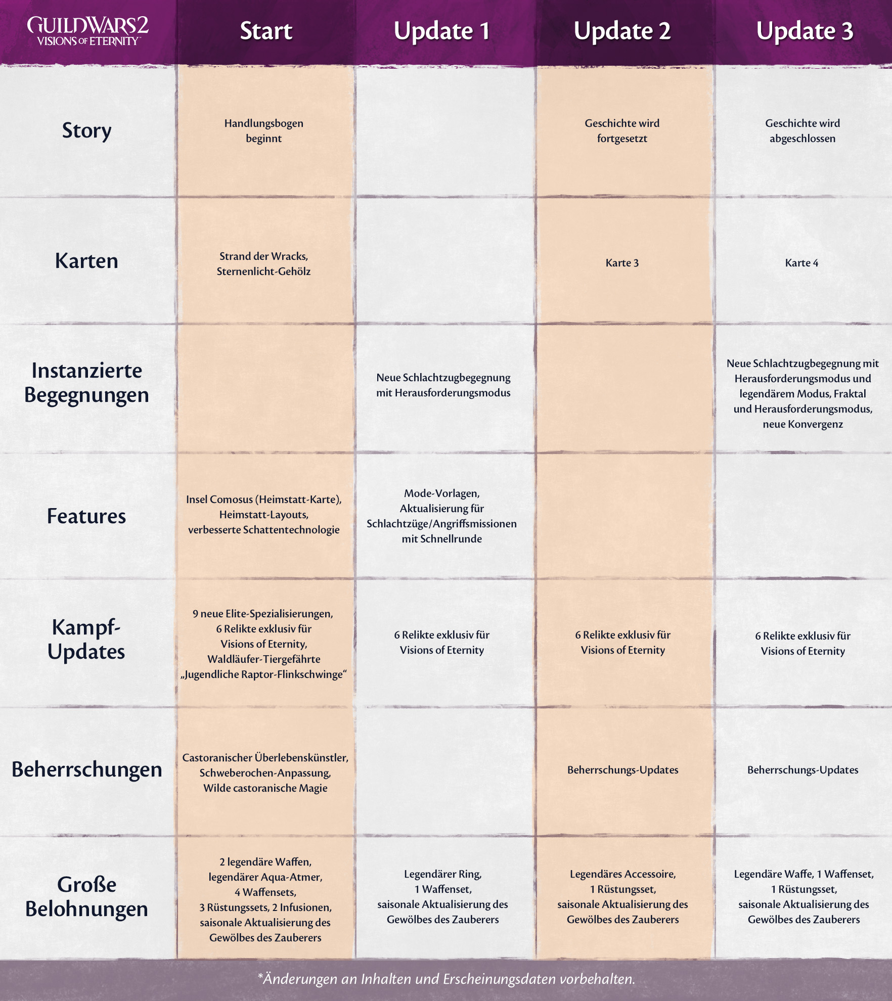 Kurz vor Release erschien in einem Blogpost die vorläufige Roadmap für den Release-Zeitraum von Visions of Eternity.