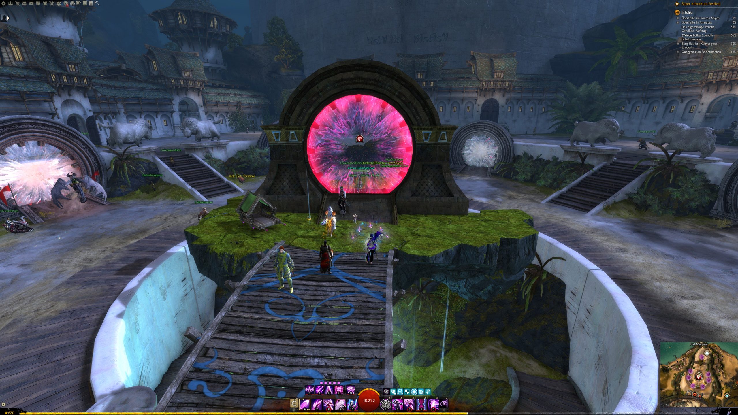 Schließt spezifische Nicht-Schnellrunden-Fraktale ab, indem Ihr sie durch das "Fraktale der Nebel"-Portale in Löwenstein betretet.