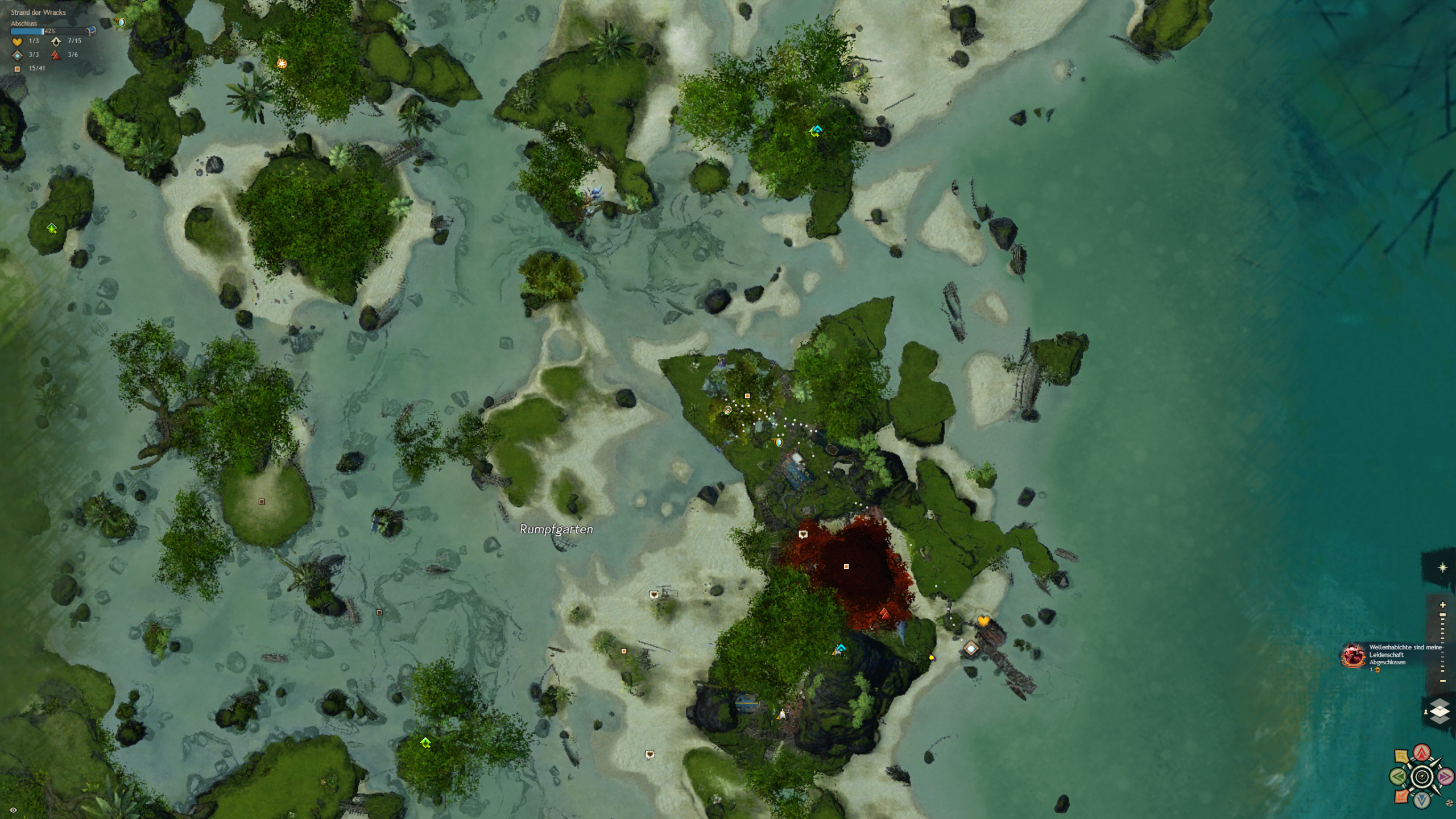 Das Fischernwetz ist im Waser an der östlichen Küste etwas oberhalb von Rumpfgarten. Es befindet sich am Rand der Gebietes, wo das dynamische Event stattfindet, bei dem ihr Geister zu ihren Knochen zurückbringen sollt. Doch Achtung. Dieses Event gibt es auch oben am Schiff. Dieses ist nicht gemeint.
