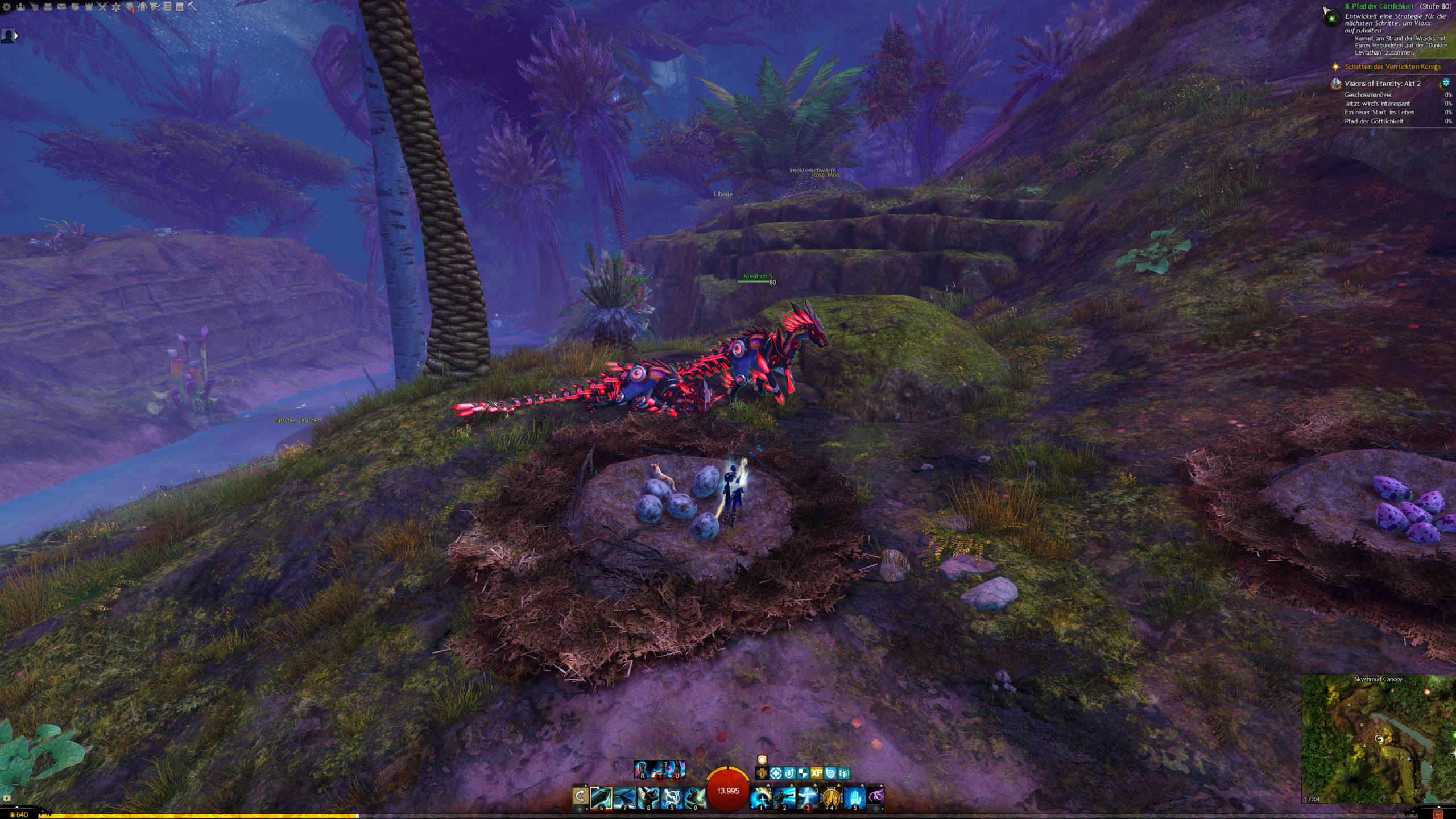 Wendet euch, nachdem ihr die Instanz verlassen habt, direkt gen Osten und ihr lauft auf die Nester, wo sich die beiden befinden direkt zu.