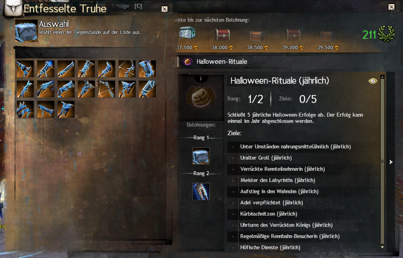 Zwei Erfolge, die für den Meta-Abschluss wichtig sind. Setzt die Halloween-Rituale auf die Beobachtungsliste, um die jährlichen Erfolge zu tracken. Das Spart Platz und hält eure Watchlist in Ordnung.