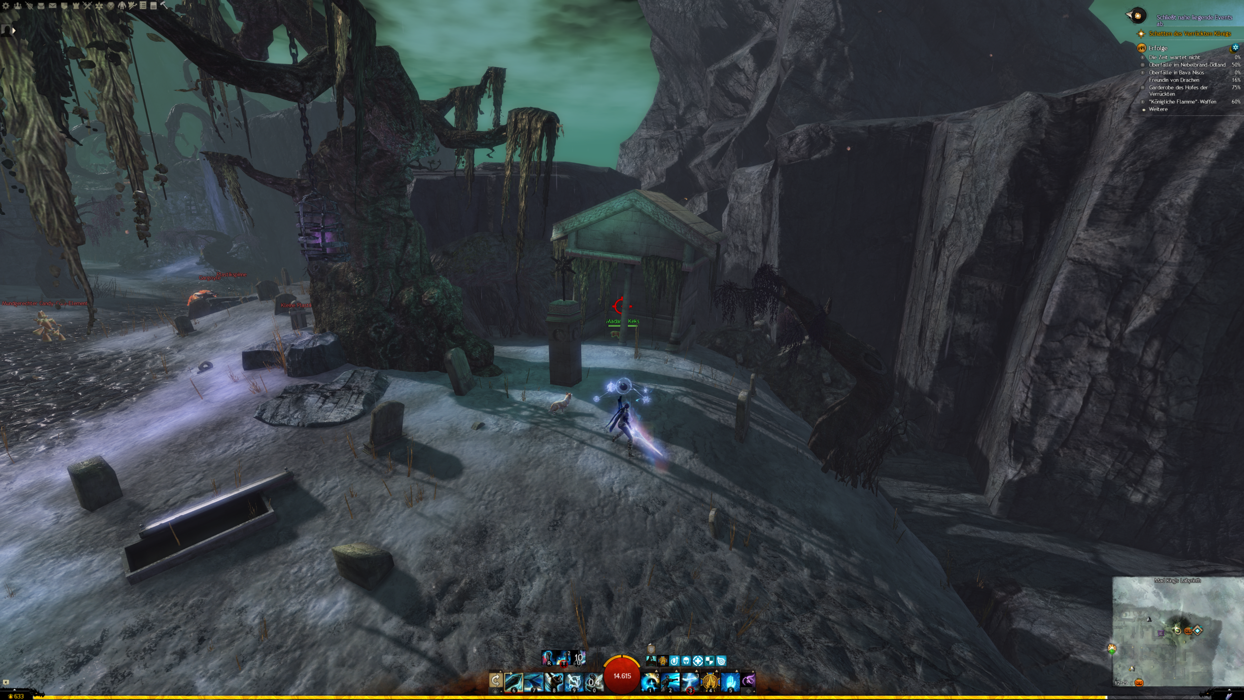 Was wäre Tyria ohne Katzen?! Natürlich haben diese possierlichen Tierchen auch im Königreich des Verrückten Königs breit gemacht. Für diesen Erfolg suchen wir Madame Keka. Eine Katze, die isch in den kleinen Kapellen im Labyrinth versteckt. Nun ist das “Problem” an der guten Dame, dass sie ziemlich umtriebig ist. Das bedeutet, dass sie regelmäßig ihr Versteck wechselt. Ihr findet jedoch eine Übersicht im Folgenden, in der alle Verstecke gekennzeichnet sind. Während eines Runs durch das Labyrinth mit einem Zerg ist es nahezu unmöglich sie nicht zu finden, wenn man weiß, wo man die Augen offen halten muss. Wenn ihr sie gefunden habt, sprecht mit ihr.
