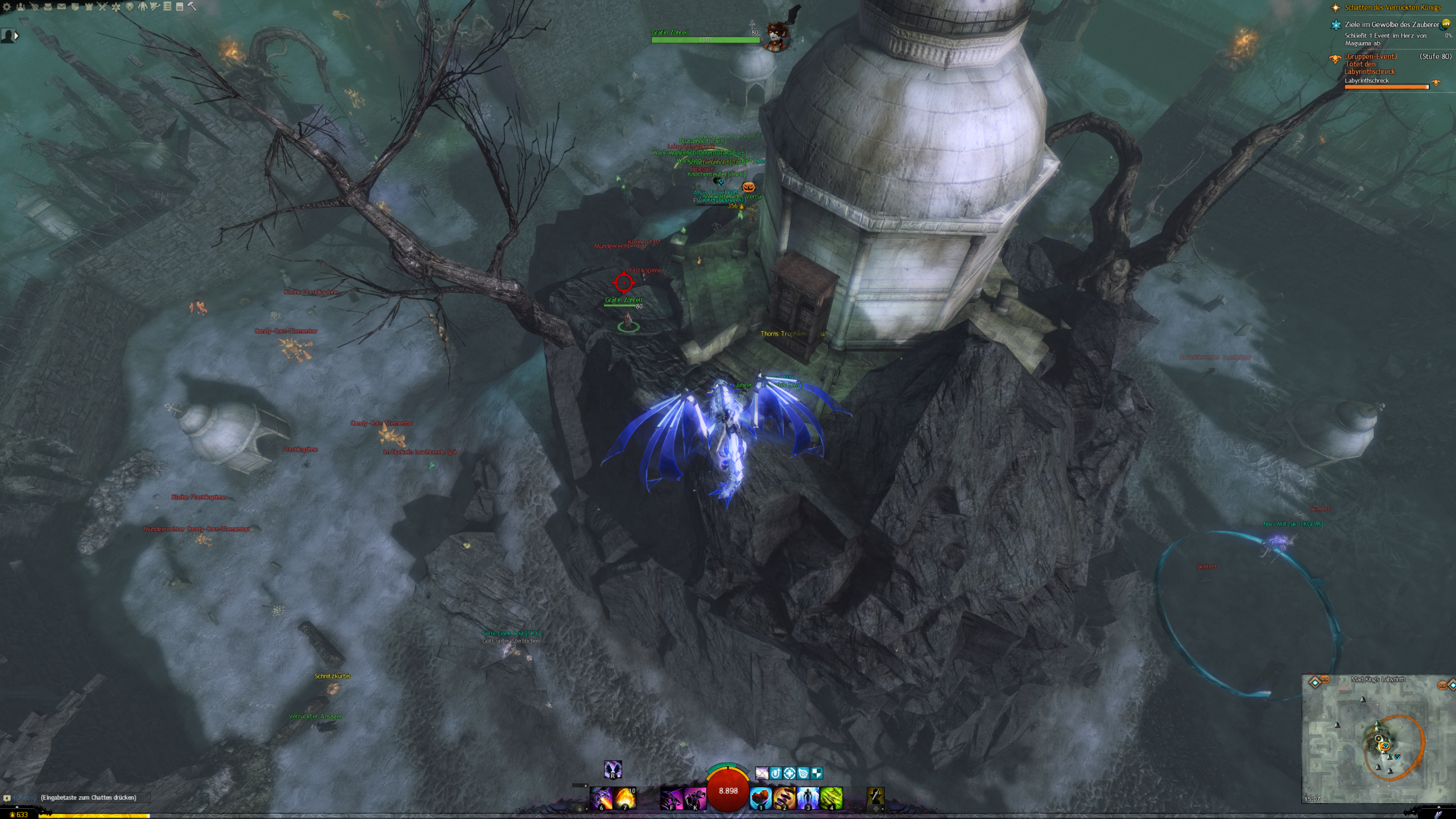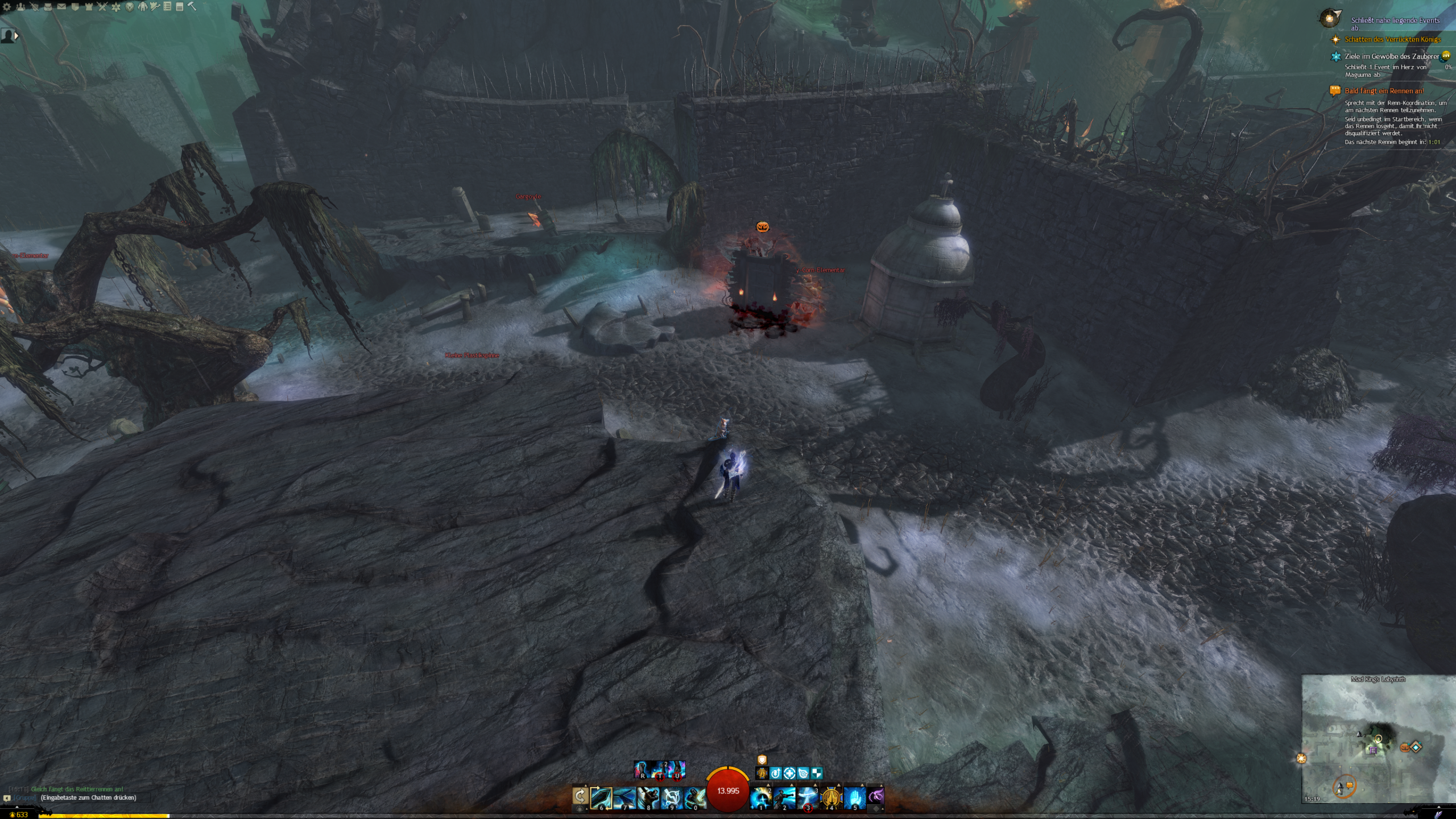 Seit 2012 kehrt Halloween jährlich zurück nach Tyria und verwandelt Löwenstein aka Lion’s Arch in eine schaurige, schöne Welt. Der Verrückte König bringt jede Menge abwechslungsreiche Abenteuer und Rennen ins Spiel und natürlich die große Hassliebe zu Halloween: Den Uhrturm. Der Clocktower ist ein Jumpingpuzzle, bei dem sich der Uhrturm dreht und euch eine stetig ansteigende, giftgrün blubbernde Suppe versucht zu ertränken. Diesen und nach viel mehr Grusel findet ihr im Labyrinth und den anderen Instanzen. Es winken auch tolle Skins, die über die Jahre neu mit der Widerkehr des Festivals nach Tyria kamen. Natürlich gibt es auch jede Menge Süßigkeiten – doch Obacht: wer zu viel isst, der lässt sich diese noch einmal durch den Kopf gehen. Und dafür ist die Während des Festivals eigentlich viel zu schade.