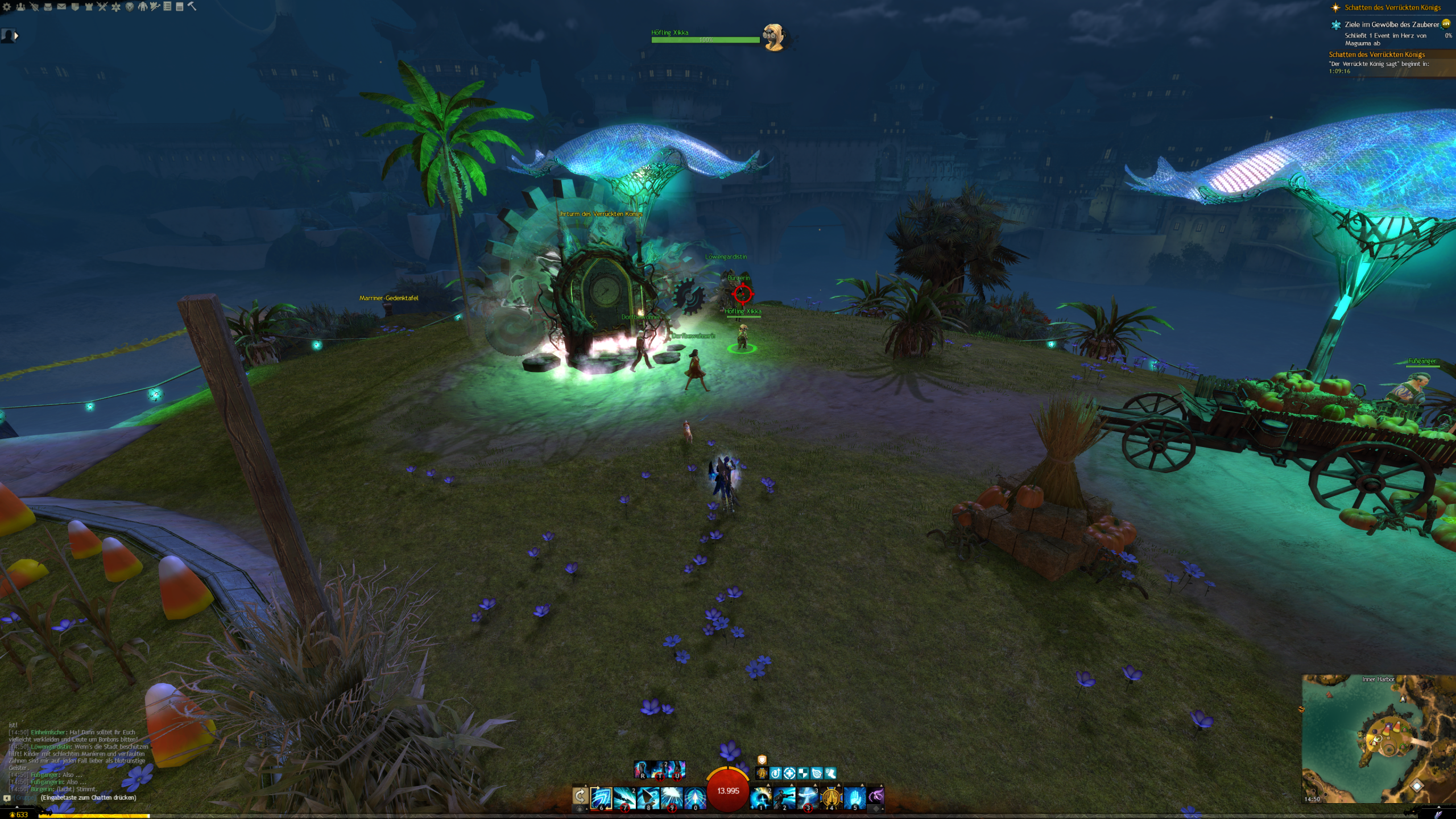 Das Halloween-Festival hat nicht nur an der Mystischen Schmiede und Fort Marriner sich niedergelassen, sondern auch in Deverols Gärten. Dieses kleine Archipel befindet sich im Innenhafen von Löwenstein. Dort findet ihr auch Xikka.