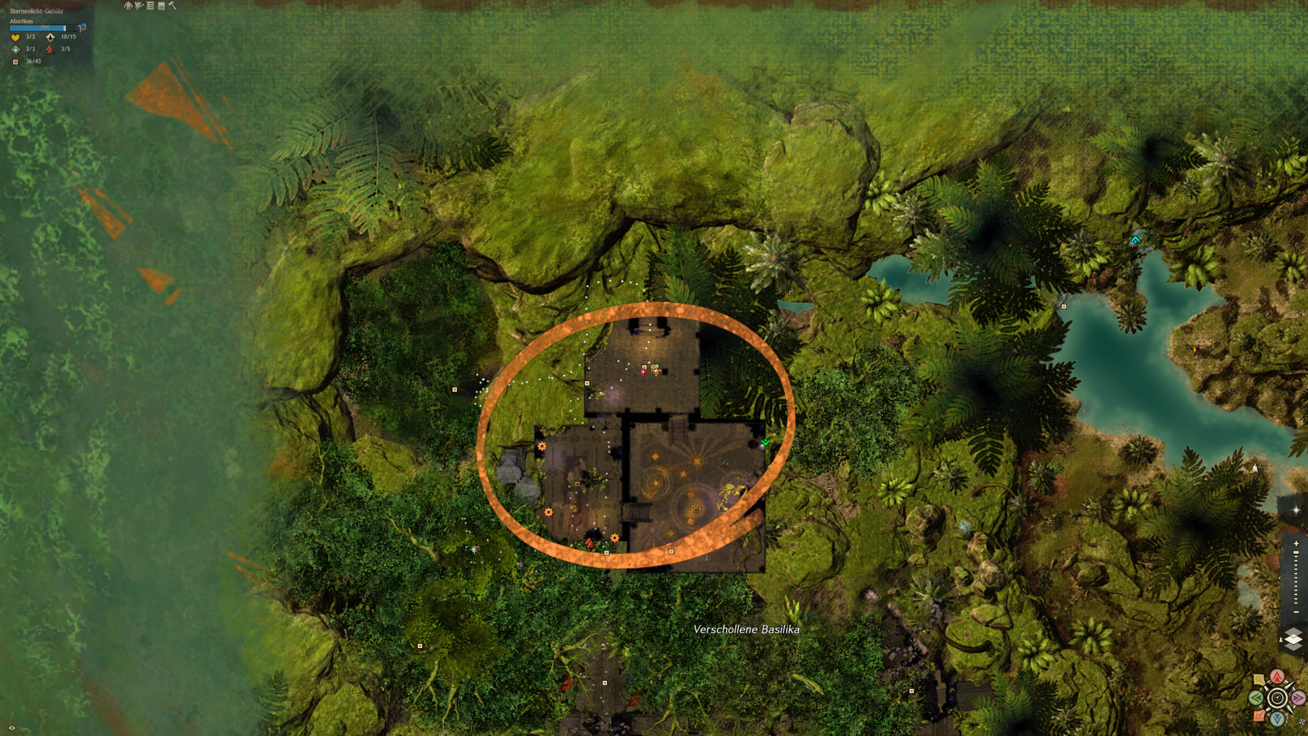 Im Nordwesten der Karte steht die Verschollene Basilika | Lost Basilika der Seher. Mit einem Event rund um Isgarren gelangt ihr in den geheimen Teil, das letzte Gewölbe | The Last Vault. Wenn ihr in den Raum kommt am Ende der Event-Kette findet ihr links vom Eingang in der Ecke den Weg in die Kanalisation. Nehmt ihn und holt euch auch direkt den Beherrschungspunkt dort.