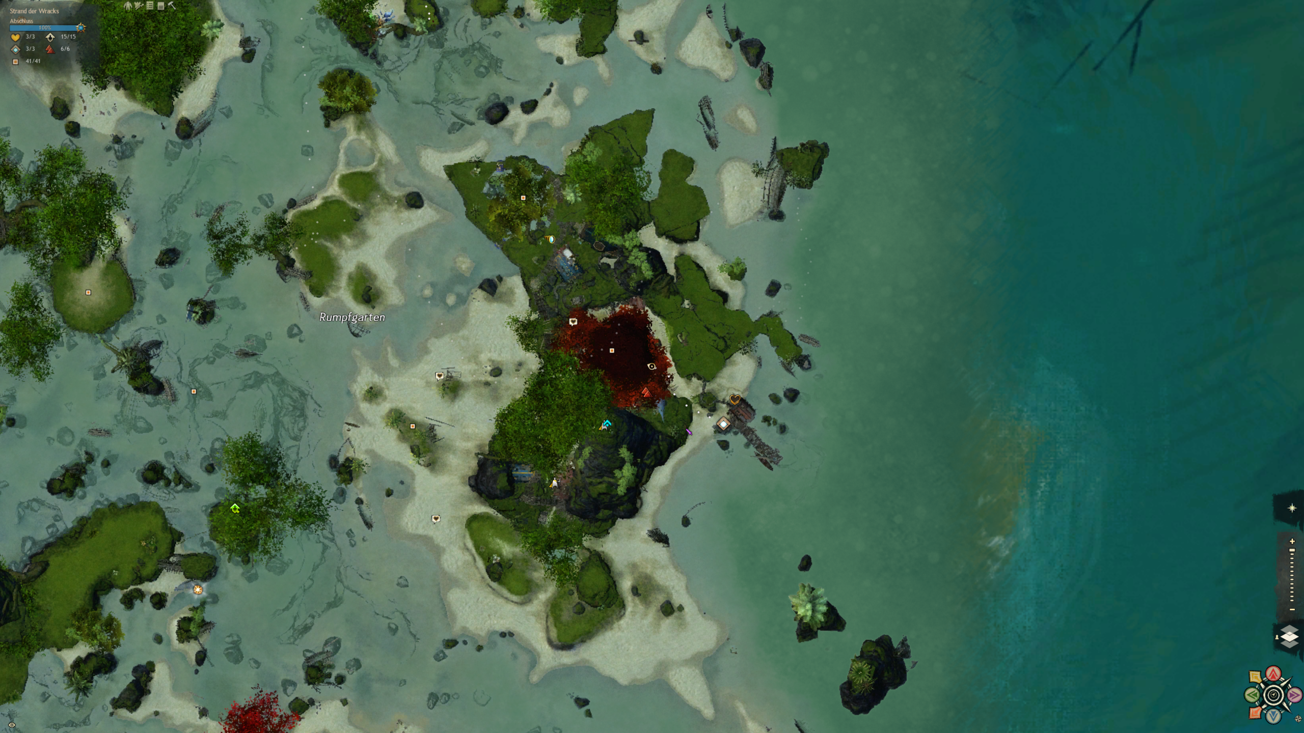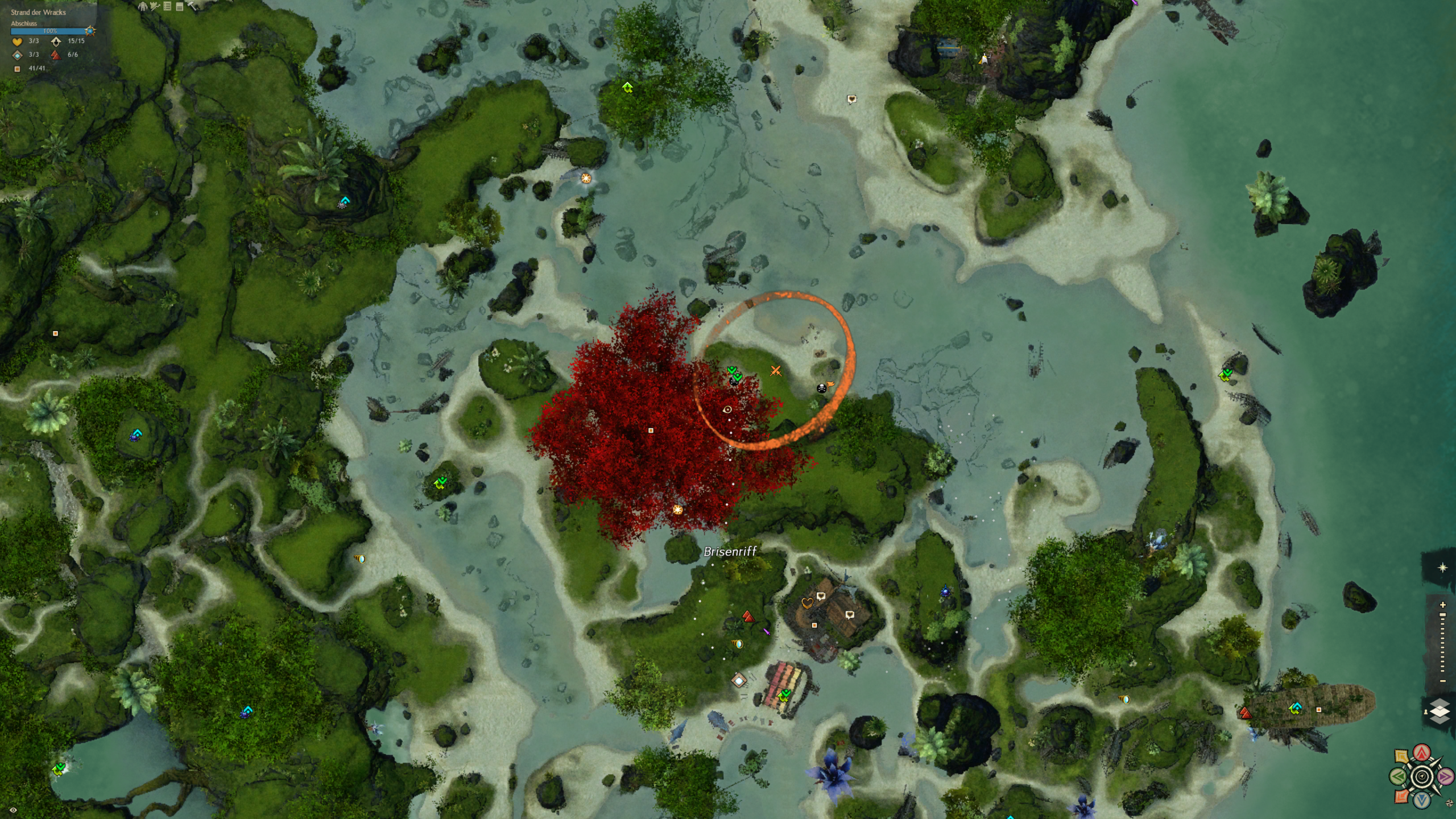 Der Strand an dem wir gelandet sind ist über säht von Schiffskeletten. Doch aus den Ruinen hat sich eine neue Zivilisation erhoben, die sich aus vielen verschiedenen Charakteren und Gruppierungen zusammensetzt. Eines haben sie gemein: die liebe für Hochprozentiges. Und sie machen das Beste aus der Tatsache, dass sie hier wohl alle ausnahmslos unfreiwillig gestrandet sind. Diese Karte ist ein wasserdurchzogenes Küstengebiet mit ein riesigen Unterwassersystem bestehend aus Höhlen und Grotten. Ein einzigartiges Riff, in dem es in jeder Ecke etwas zu entdecken gibt.