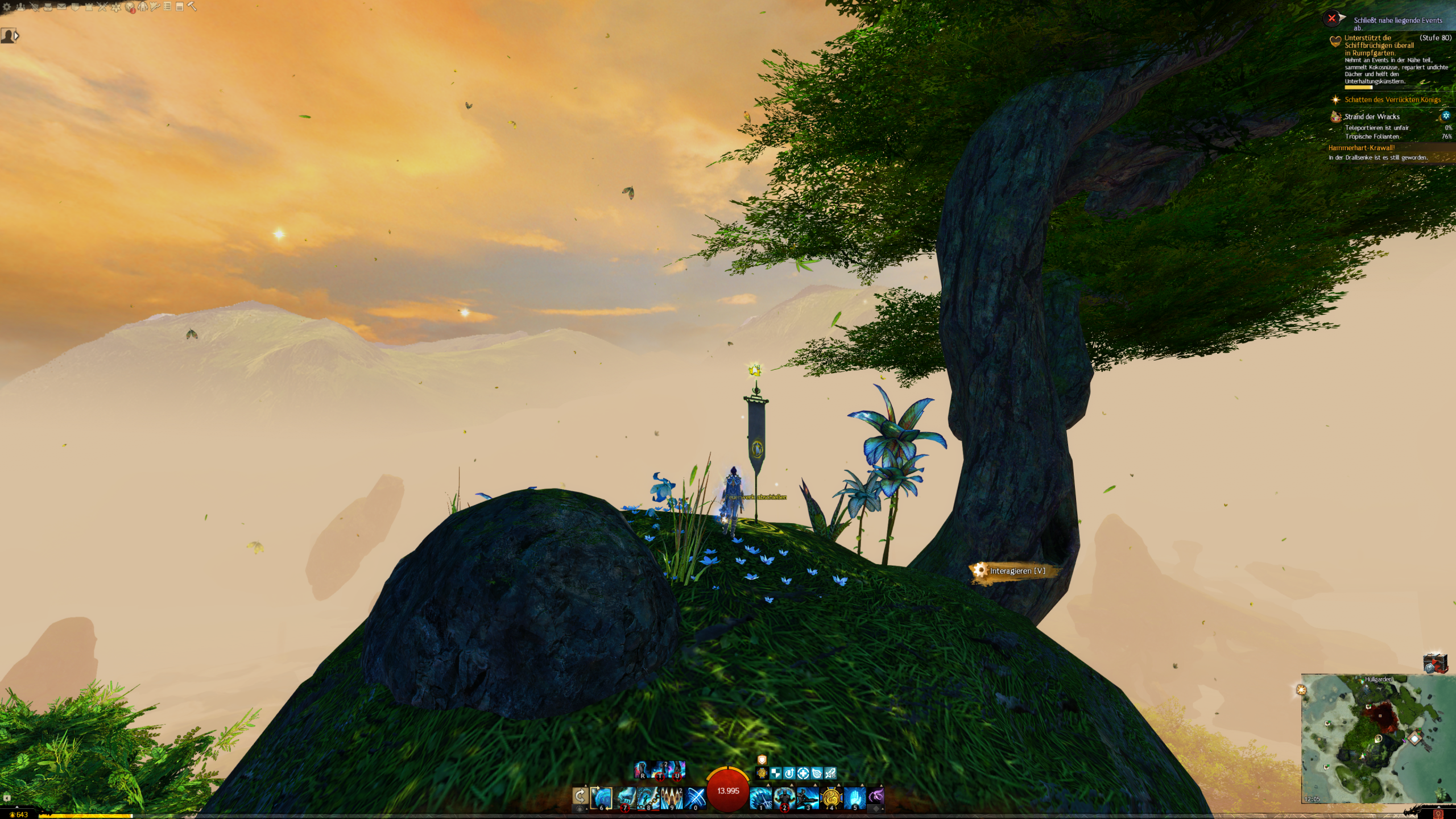 Das Abenteuer befindet sich direkt über Rumpfgarten | Hullgarden. In der Siedlung lümmelt sich ein Char, der das Abenteuer-Symbol über dem Kopf. Interagiert mit ihm und ihr werdet auf die Spitze des Felsen bei Rumpfgarten Teleportiert.