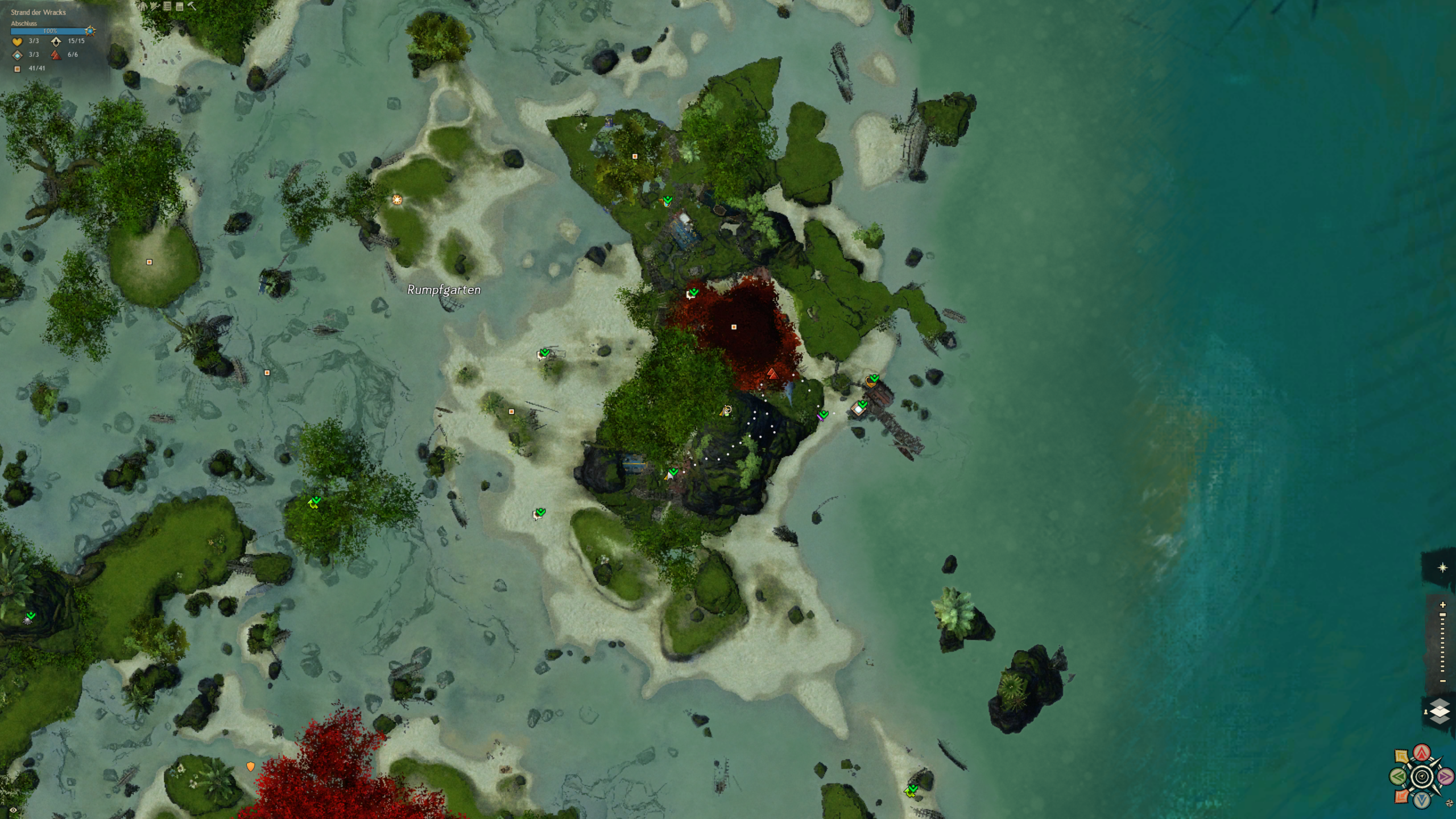 Der Strand an dem wir gelandet sind ist über säht von Schiffskeletten. Doch aus den Ruinen hat sich eine neue Zivilisation erhoben, die sich aus vielen verschiedenen Charakteren und Gruppierungen zusammensetzt. Eines haben sie gemein: die liebe für Hochprozentiges. Und sie machen das Beste aus der Tatsache, dass sie hier wohl alle ausnahmslos unfreiwillig gestrandet sind. Diese Karte ist ein wasserdurchzogenes Küstengebiet mit ein riesigen Unterwassersystem bestehend aus Höhlen und Grotten. Ein einzigartiges Riff, in dem es in jeder Ecke etwas zu entdecken gibt.