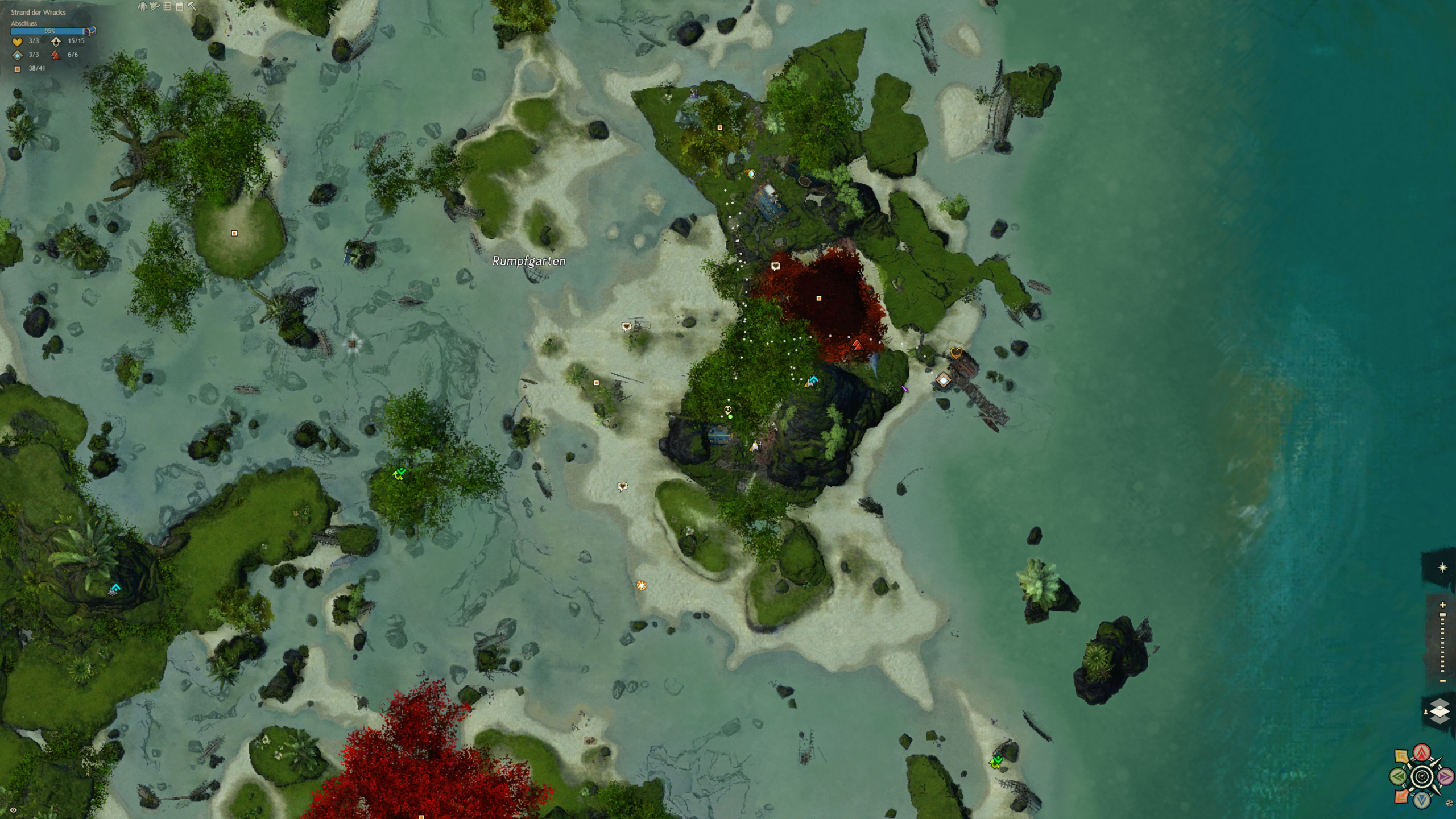 Der Strand an dem wir gelandet sind ist über säht von Schiffskeletten. Doch aus den Ruinen hat sich eine neue Zivilisation erhoben, die sich aus vielen verschiedenen Charakteren und Gruppierungen zusammensetzt. Eines haben sie gemein: die liebe für Hochprozentiges. Und sie machen das Beste aus der Tatsache, dass sie hier wohl alle ausnahmslos unfreiwillig gestrandet sind. Diese Karte ist ein wasserdurchzogenes Küstengebiet mit ein riesigen Unterwassersystem bestehend aus Höhlen und Grotten. Ein einzigartiges Riff, in dem es in jeder Ecke etwas zu entdecken gibt.
