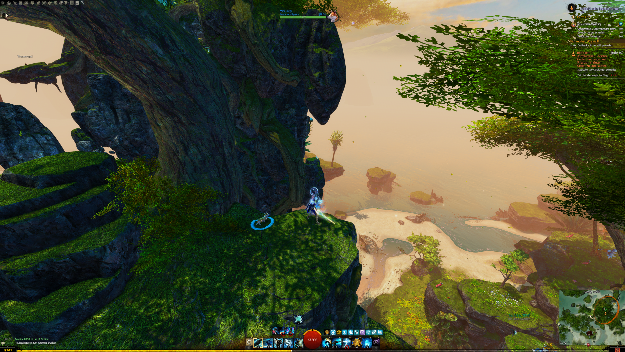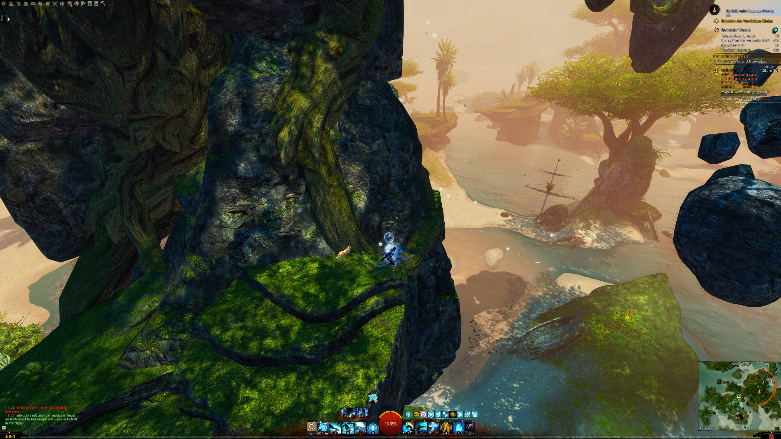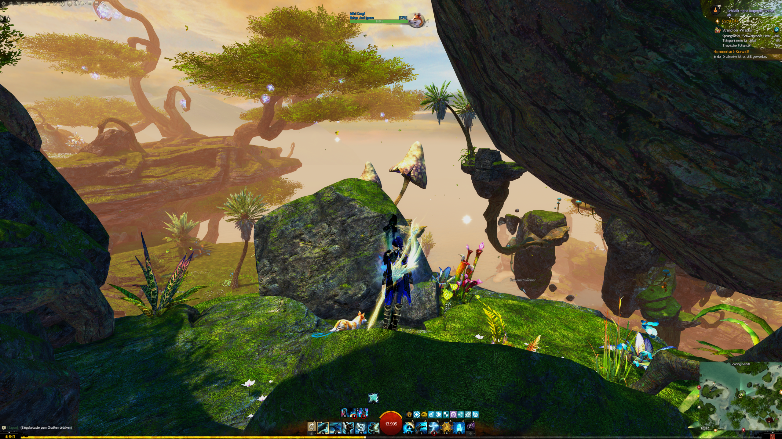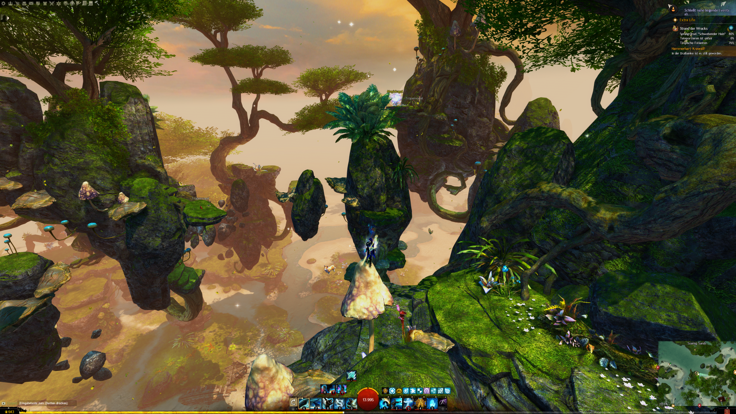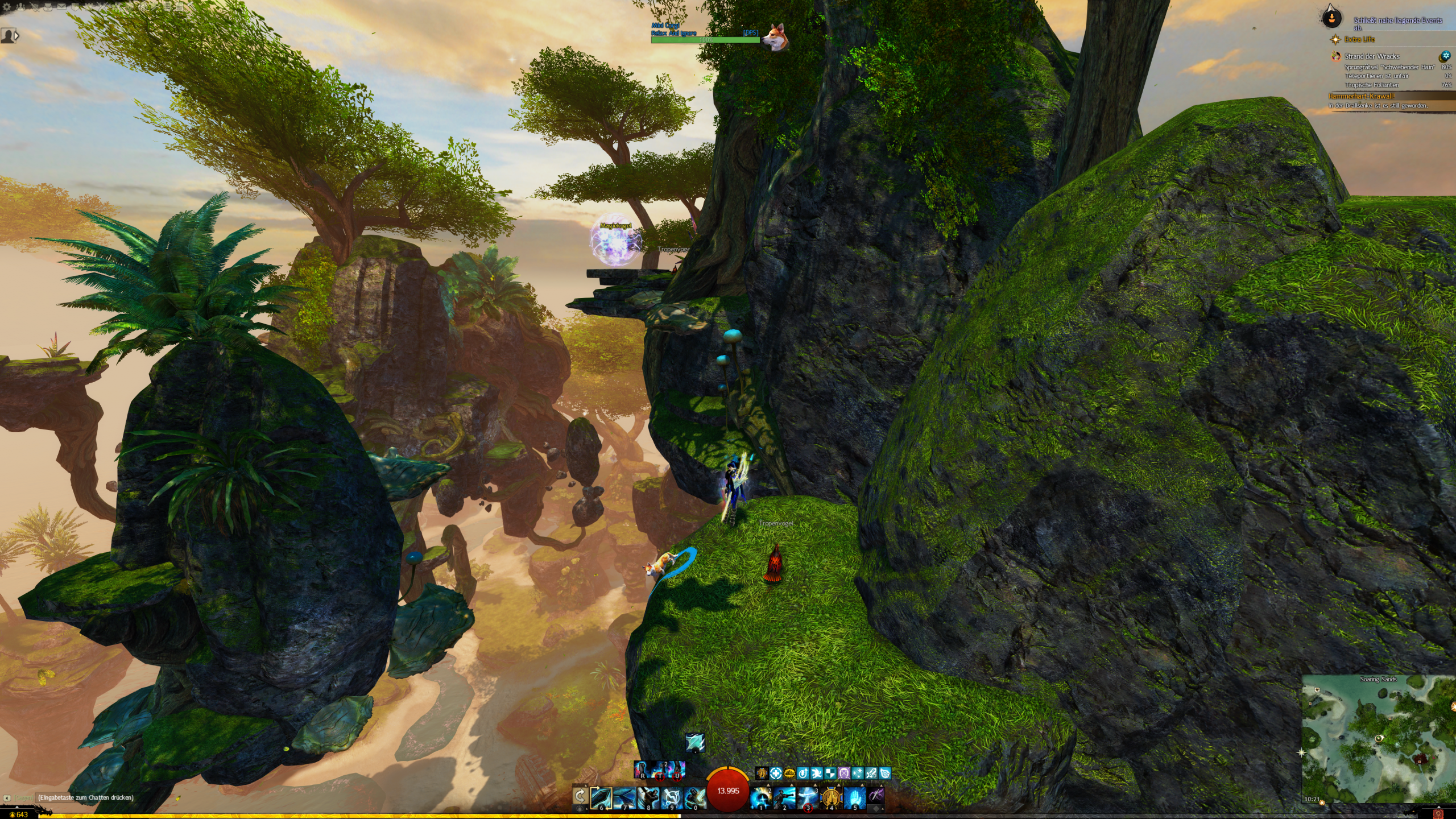 - die Jadebot-Wegmarke nutzen – Sie hat zwar einen hohen Cooldown, aber wenn ihr fallt öffnet ihr den Gleiter und portet euch hoch. OBACHT: Dabei verliert ihr jedoch den oben geannten zusätzlichen Erfolg!