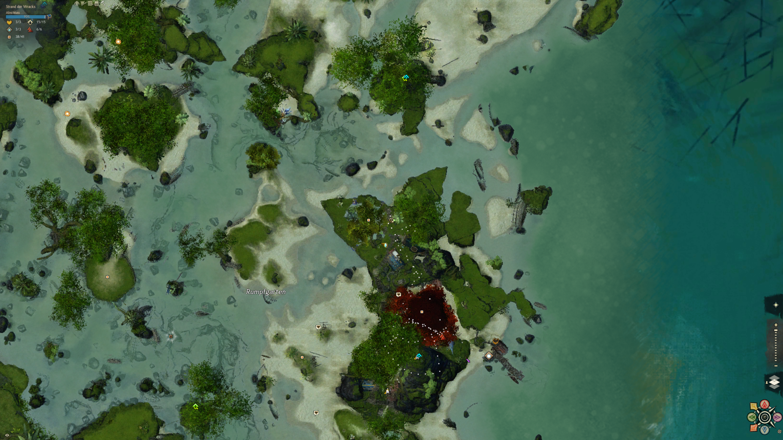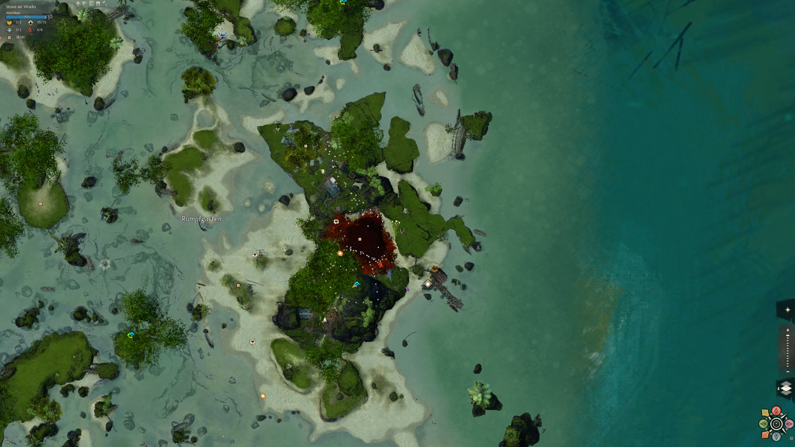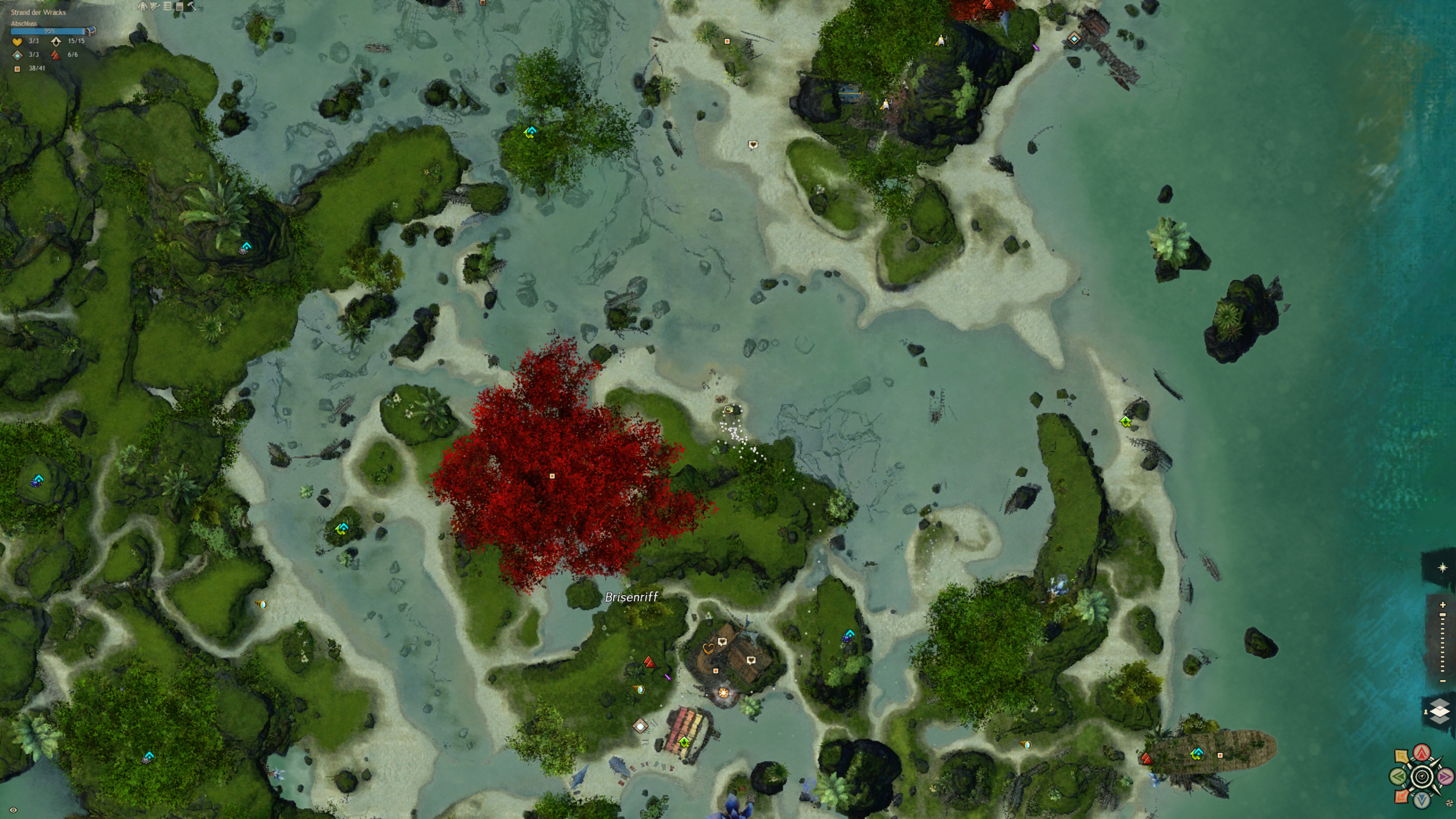 Der Strand an dem wir gelandet sind ist über säht von Schiffskeletten. Doch aus den Ruinen hat sich eine neue Zivilisation erhoben, die sich aus vielen verschiedenen Charakteren und Gruppierungen zusammensetzt. Eines haben sie gemein: die liebe für Hochprozentiges. Und sie machen das Beste aus der Tatsache, dass sie hier wohl alle ausnahmslos unfreiwillig gestrandet sind. Diese Karte ist ein wasserdurchzogenes Küstengebiet mit ein riesigen Unterwassersystem bestehend aus Höhlen und Grotten. Ein einzigartiges Riff, in dem es in jeder Ecke etwas zu entdecken gibt.