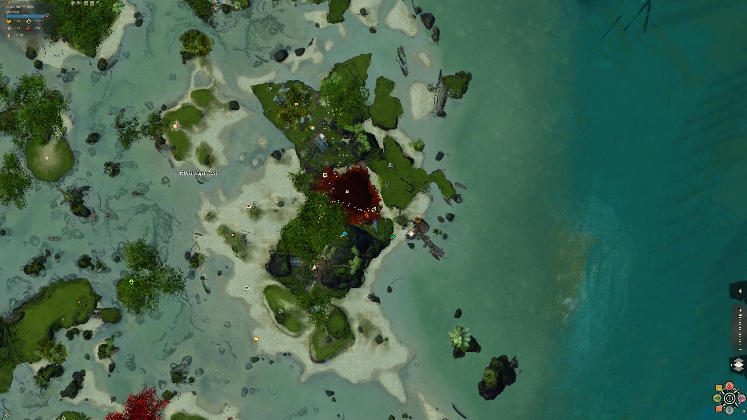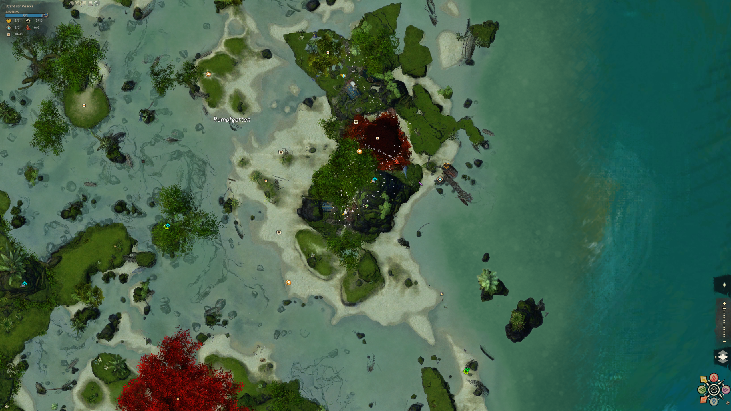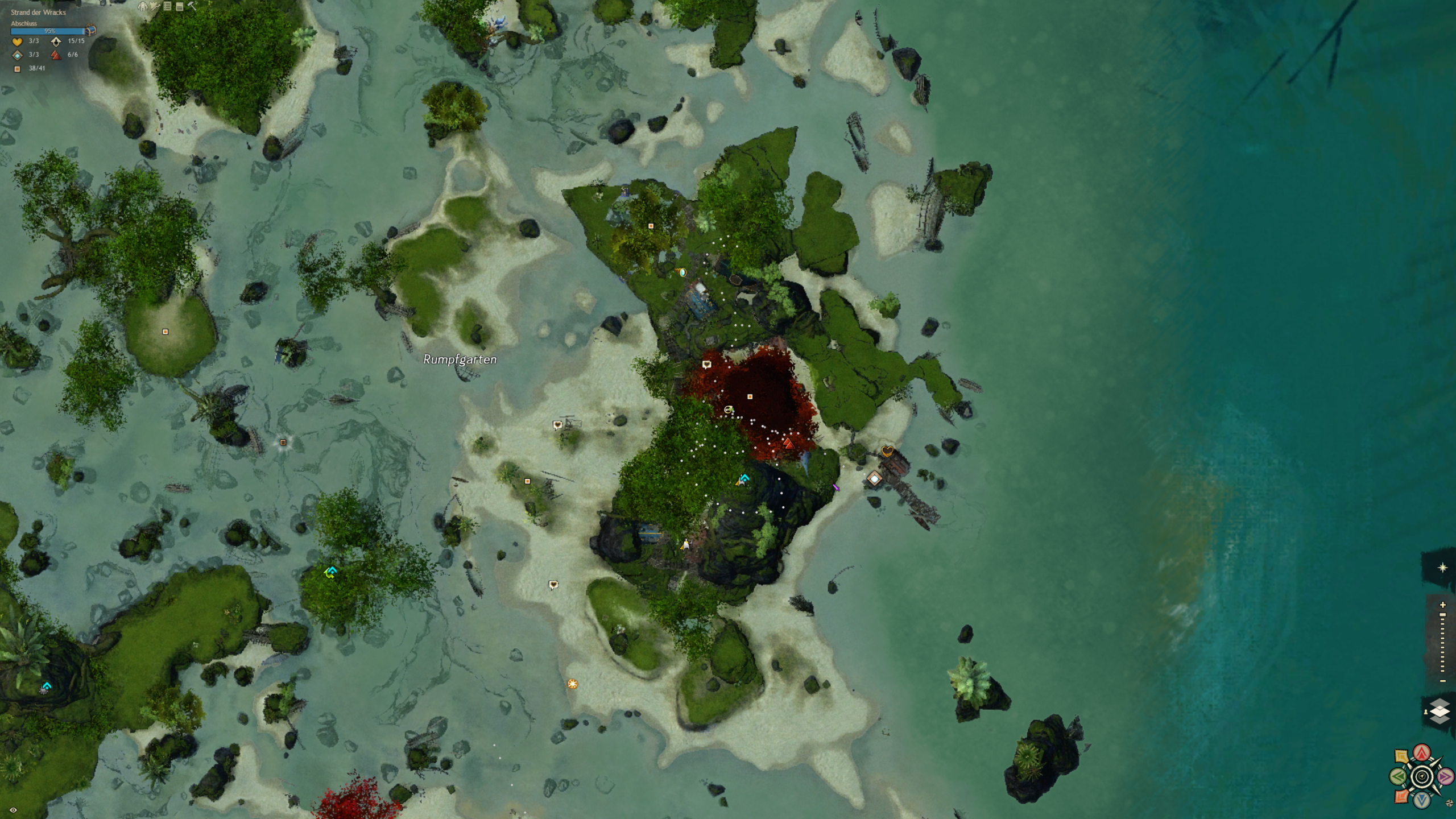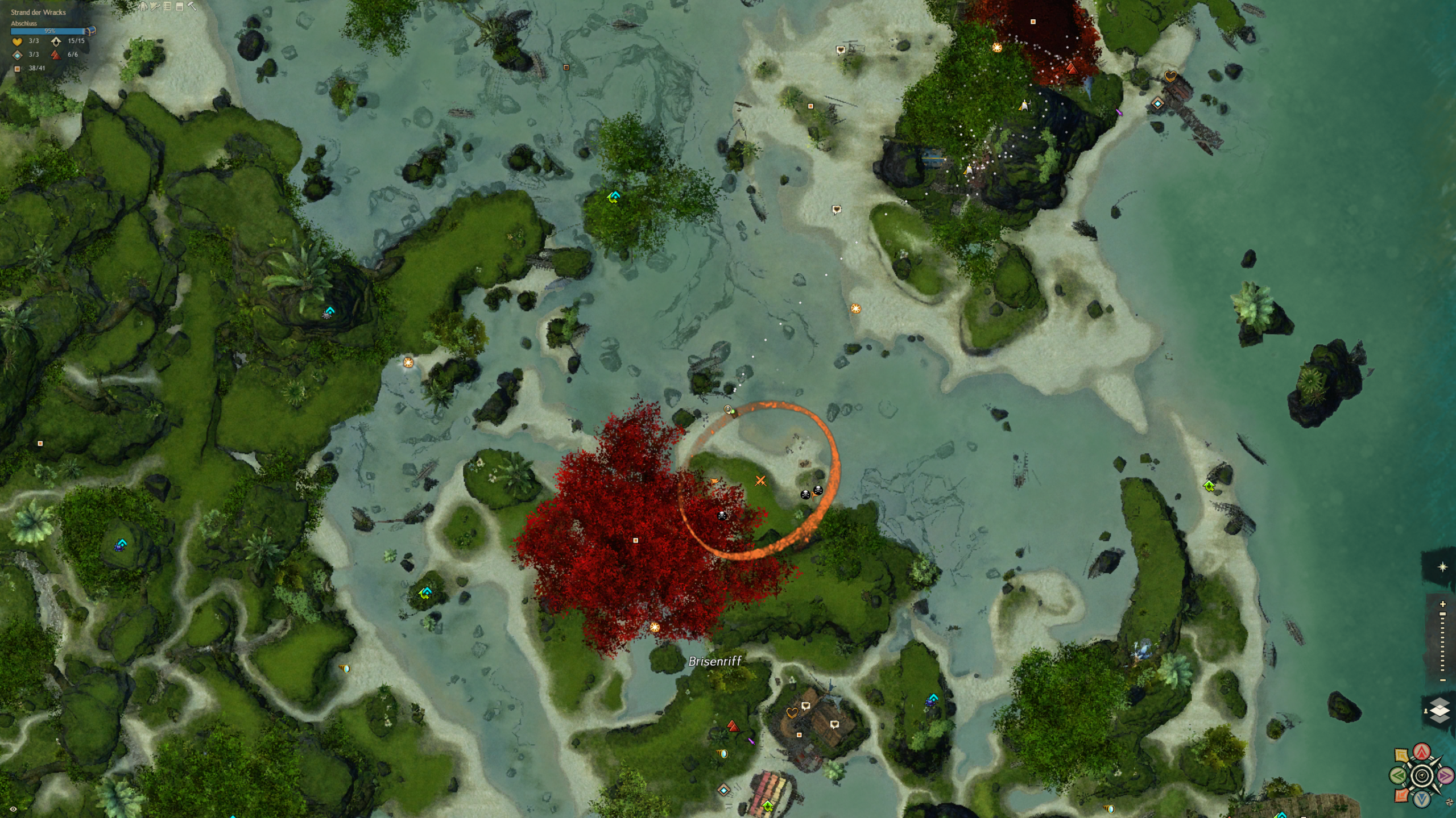 Der Strand an dem wir gelandet sind ist über säht von Schiffskeletten. Doch aus den Ruinen hat sich eine neue Zivilisation erhoben, die sich aus vielen verschiedenen Charakteren und Gruppierungen zusammensetzt. Eines haben sie gemein: die liebe für Hochprozentiges. Und sie machen das Beste aus der Tatsache, dass sie hier wohl alle ausnahmslos unfreiwillig gestrandet sind. Diese Karte ist ein wasserdurchzogenes Küstengebiet mit ein riesigen Unterwassersystem bestehend aus Höhlen und Grotten. Ein einzigartiges Riff, in dem es in jeder Ecke etwas zu entdecken gibt.