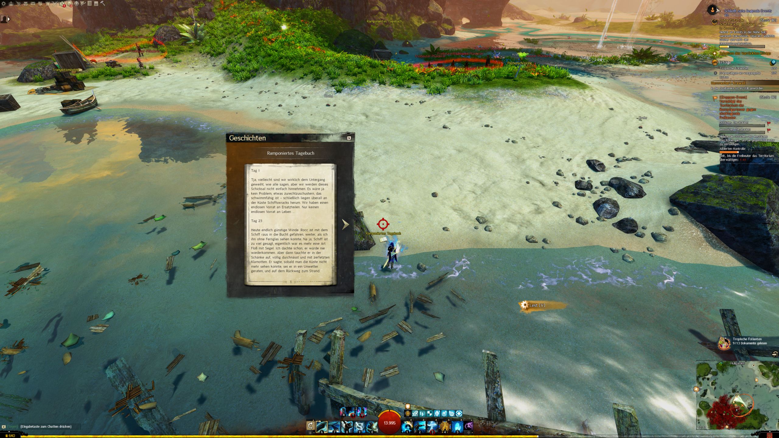 Lest alle am Strand der Wracks verstreuten Dokumente der Rumüfgartener und Freibeuter. - Das Leben auf einsamen Inseln hat einiges für sich.