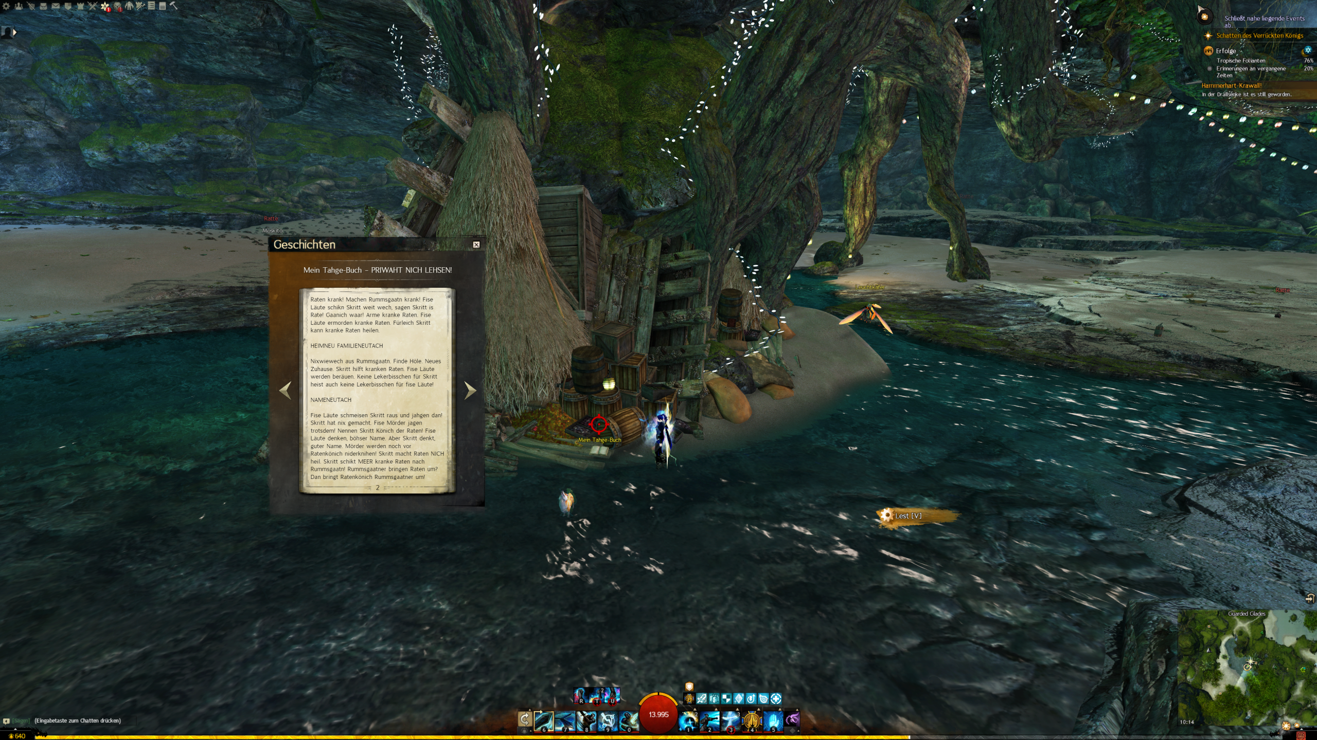 Unsere Suche nach Dokumenten für diesen Erfolg setzt den Fokus auf Rumpfgarten. Besonders sei an dieser Stelle angemerkt, dass die letzten drei Dokumente erst zugänglich sind, nachdem ihr das Ansehen-Herz für Rumpfgarten auf die dritte Stufe gebracht habt. Auch diese findet ihr in diesem Guide.