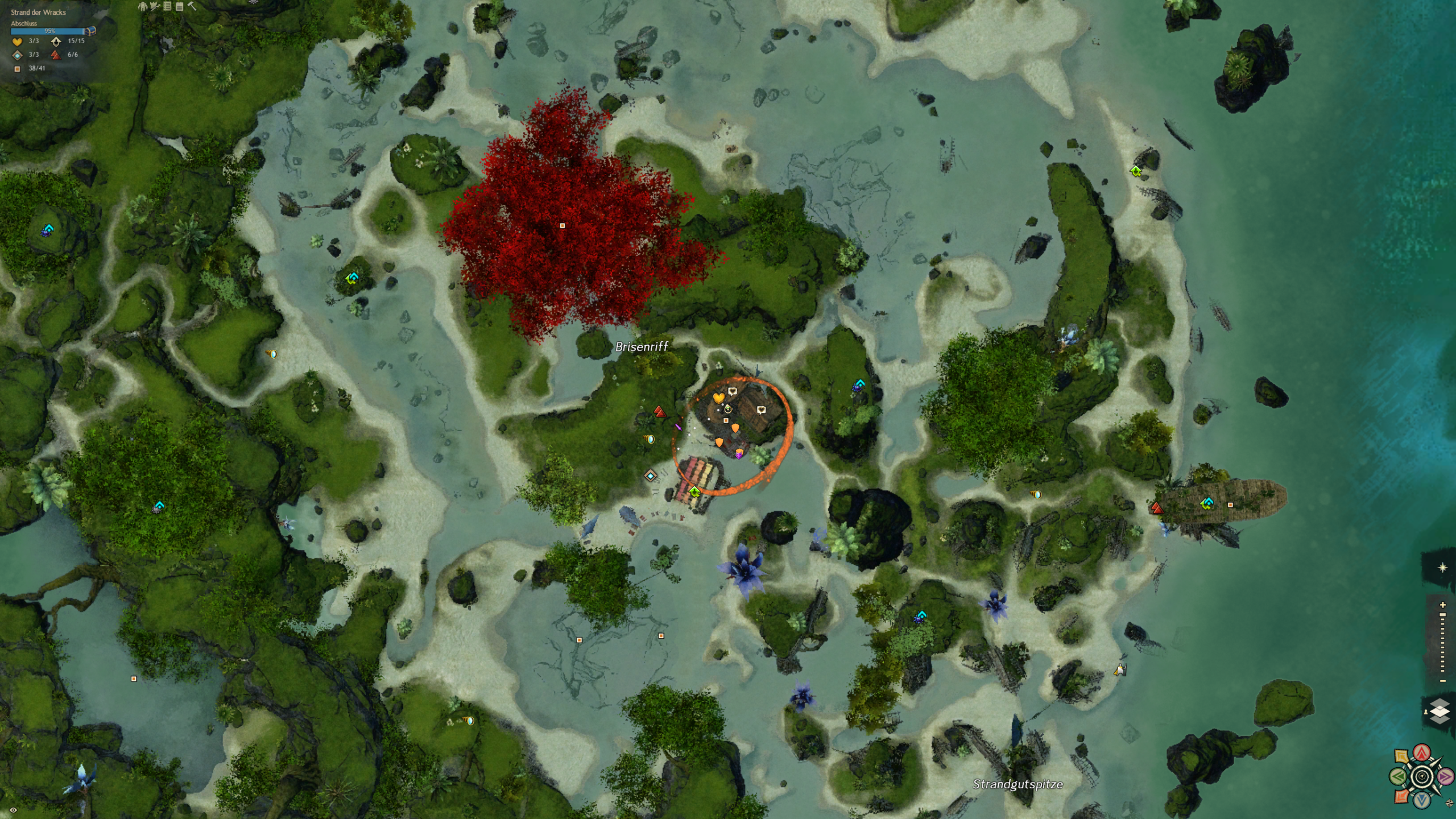 Der Strand an dem wir gelandet sind ist über säht von Schiffskeletten. Doch aus den Ruinen hat sich eine neue Zivilisation erhoben, die sich aus vielen verschiedenen Charakteren und Gruppierungen zusammensetzt. Eines haben sie gemein: die liebe für Hochprozentiges. Und sie machen das Beste aus der Tatsache, dass sie hier wohl alle ausnahmslos unfreiwillig gestrandet sind. Diese Karte ist ein wasserdurchzogenes Küstengebiet mit ein riesigen Unterwassersystem bestehend aus Höhlen und Grotten. Ein einzigartiges Riff, in dem es in jeder Ecke etwas zu entdecken gibt.